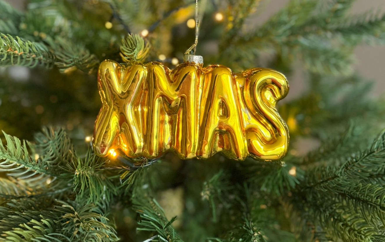 Kersthanger: XMAS (goud – 14,5×3,5×7,5 cm)
